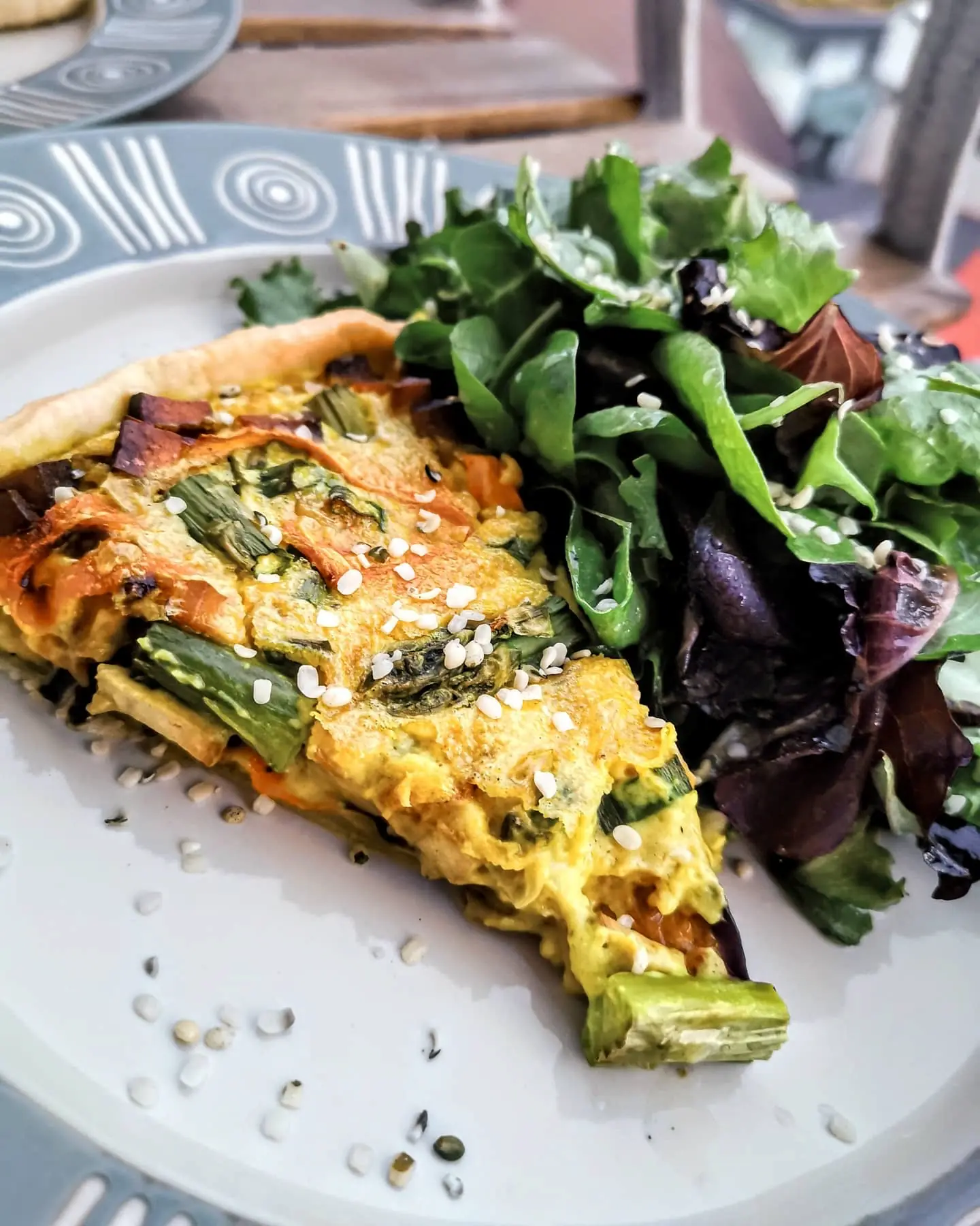 Zum ersten Mal, seit ich vegan lebe, habe ich mich an eine Quiche getraut. Ich bin letztens zufällig bei einer Freundin nach einer gefühlten Ewigkeit dazu gekommen, eine Quiche zu essen und habe mich dann im gleichen Atemzug gefragt, warum ich eigentlich selbst noch nie auf die Idee gekommen bin, eine vegane Variante davon zu zaubern. Gedacht, getan! So entstand diese runde Köstlichkeit!!